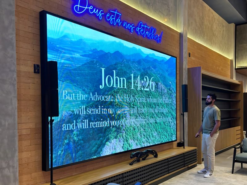 Já os modelos indoor, com luminosidade entre 800 e 1.500 nits, priorizam fidelidade de cores e resolução, custando menos que os externos de mesmas dimensões.